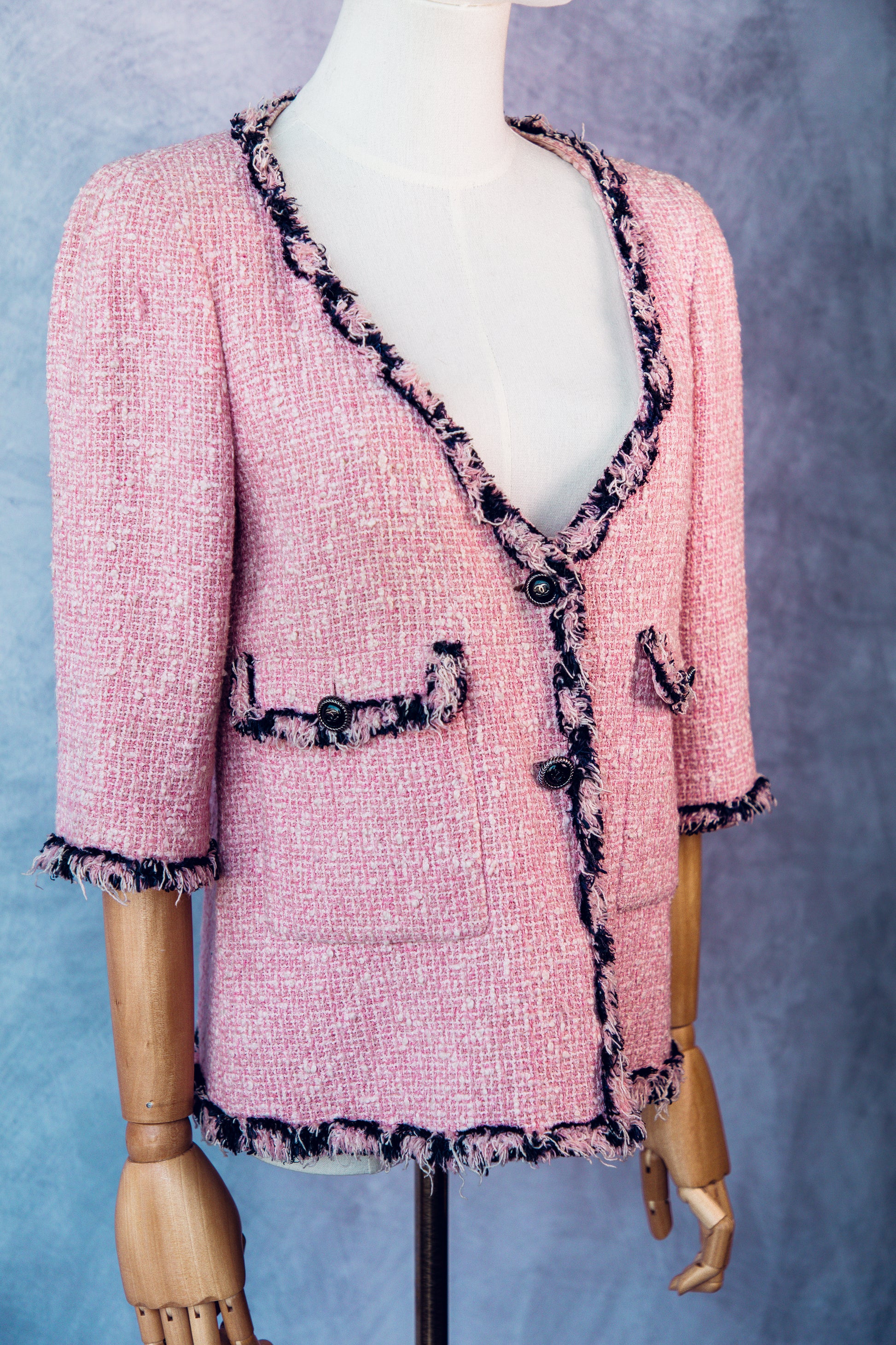 Vintage Chanel Pink Tweed Blazer small CJ002
