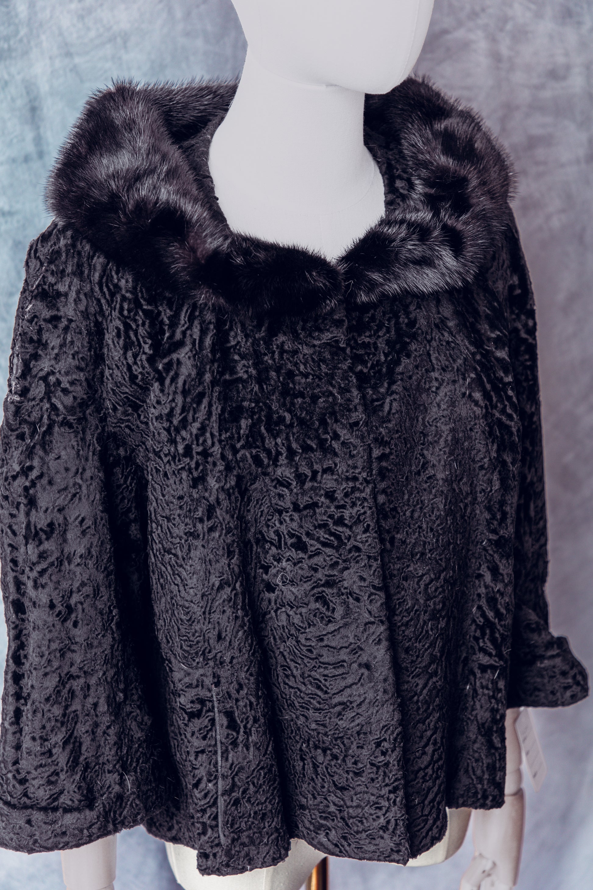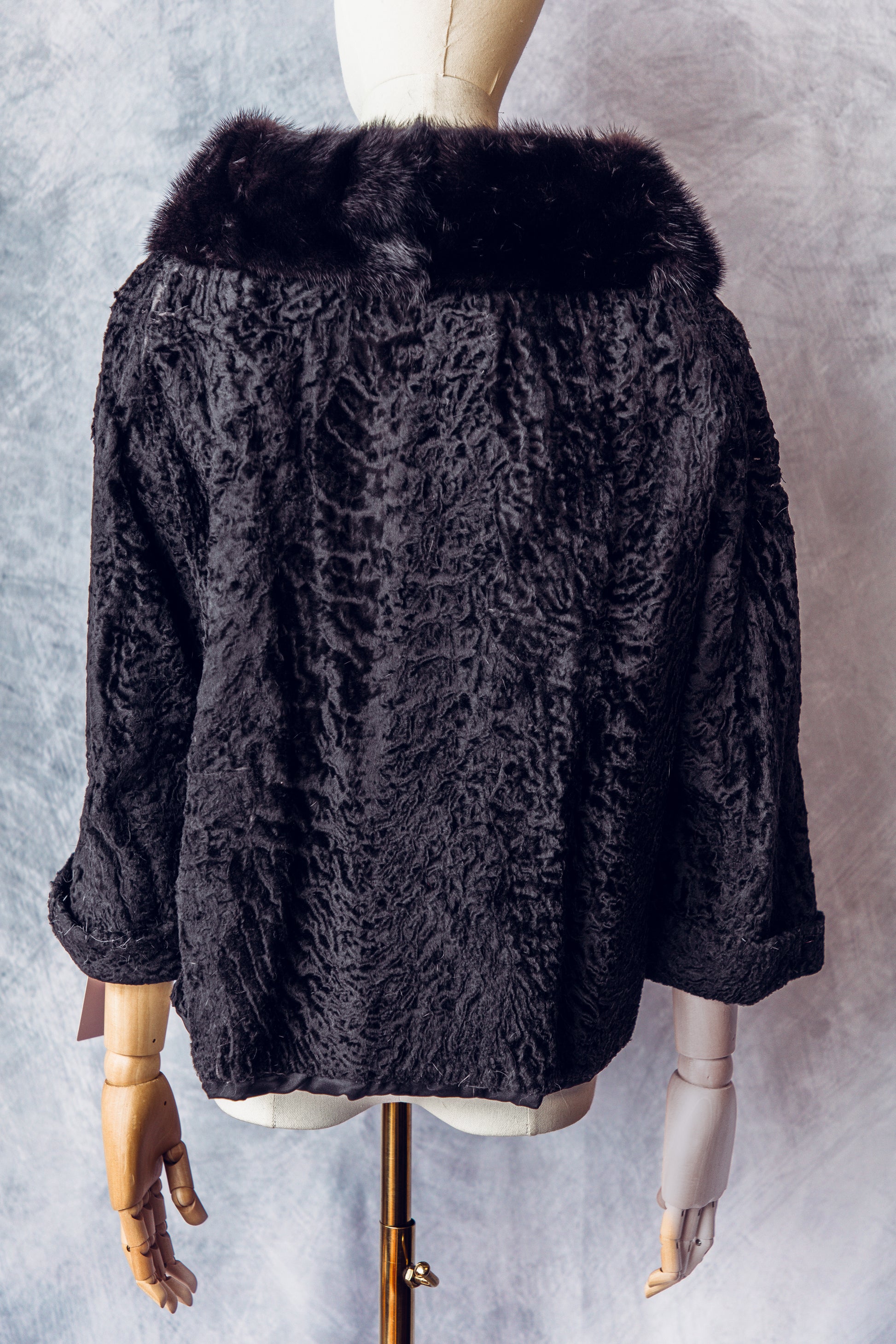 Vintage Fur Curly Lamb Mink Collar Black Medium